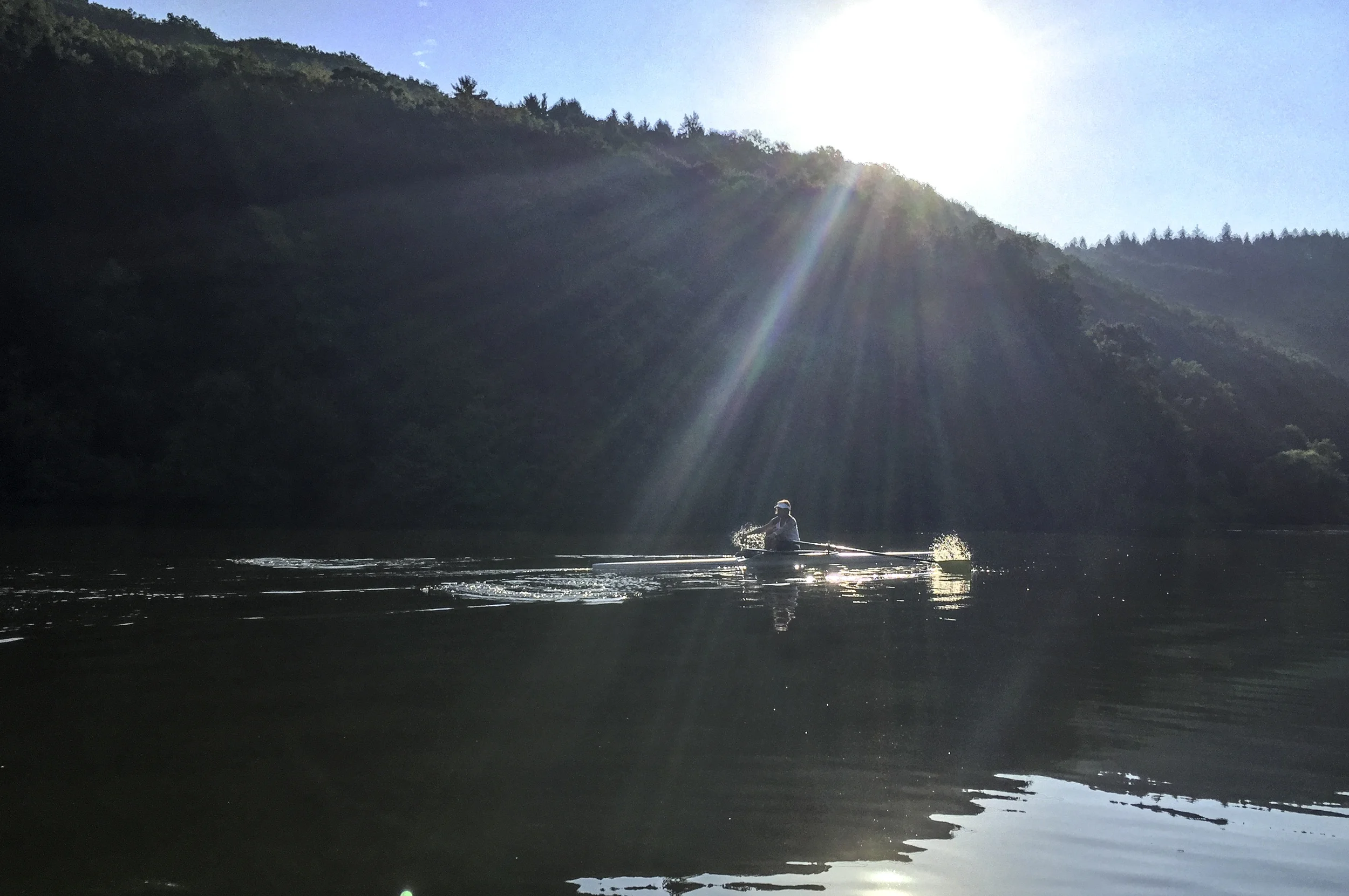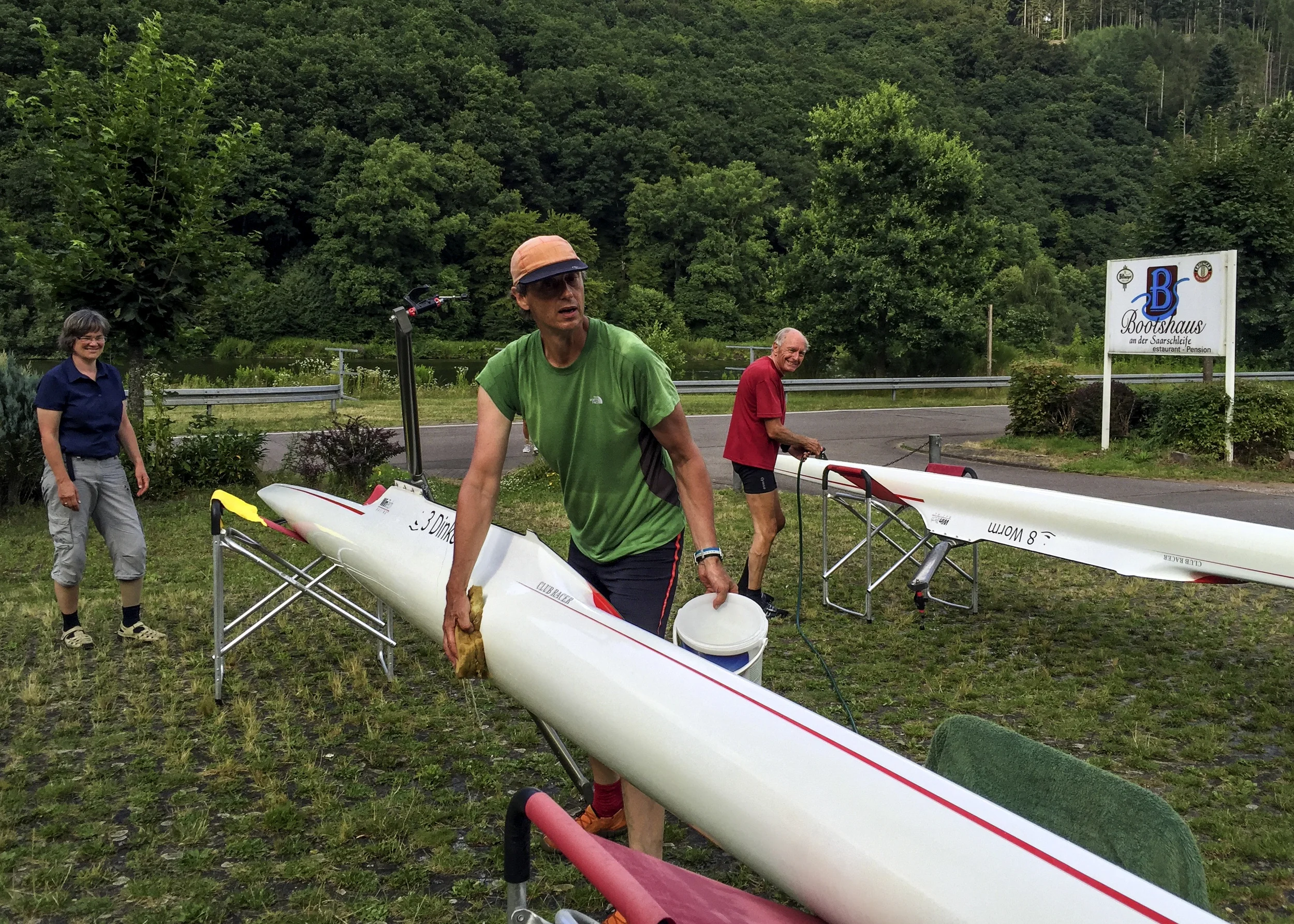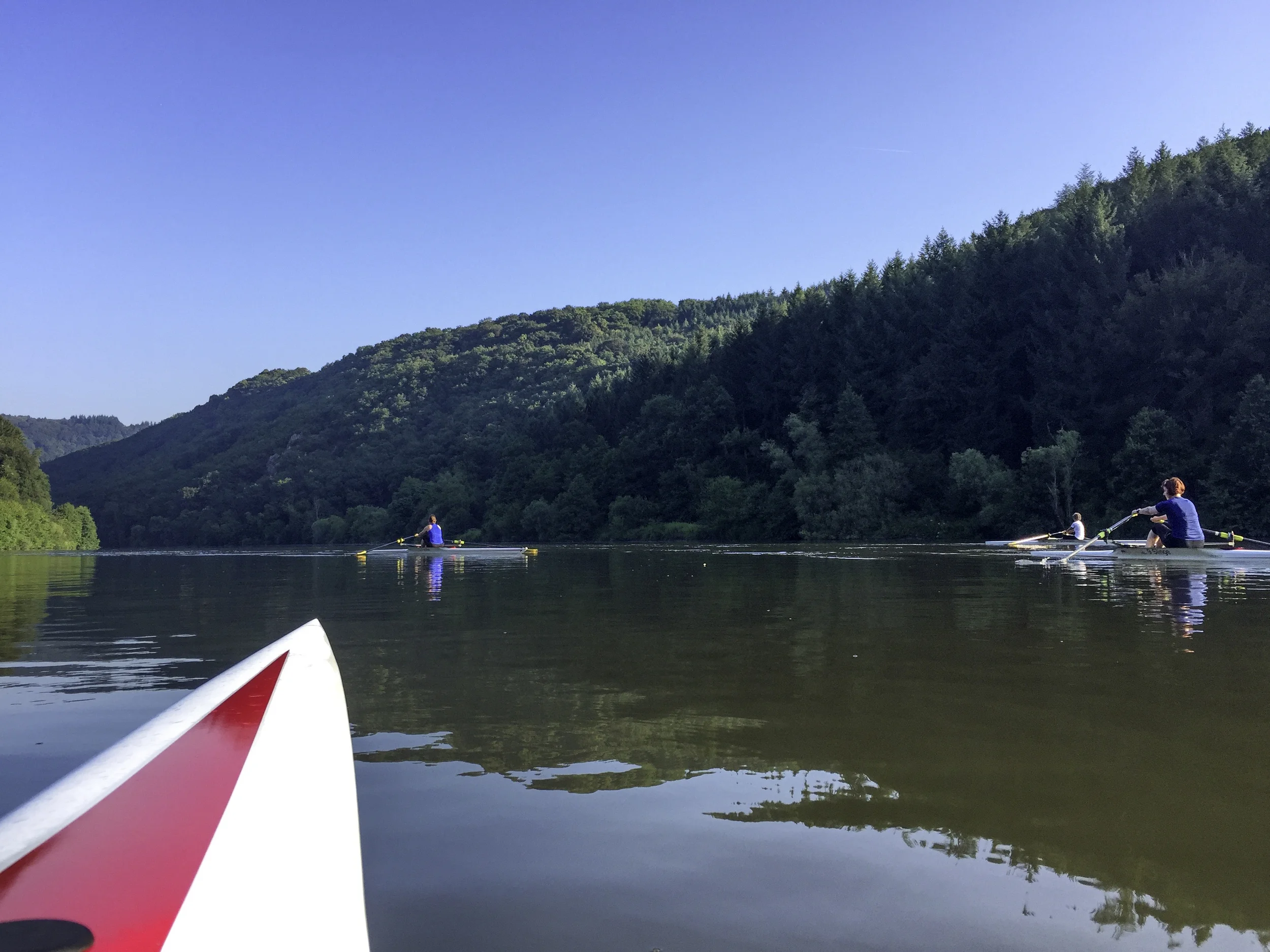 Im Juli 2016 fuhren wir erstmals an die Saar, südlich von Trier in Mettlach, für ein Trainingscamp in Skiffbooten. Die 8 Ruderer des RCE wurden bestens betreut und gecoacht von Reina Reemtsma vom Saar Rowing center. Im Clubhaus, direkt am Wasser gelegen, konnten wir logieren und wurden kulinarisch bestens versorgt.